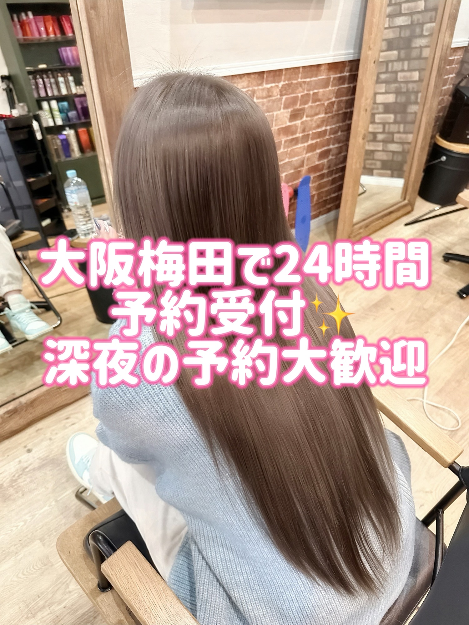 当店は深夜営業対応の美容院なので、仕事終わりや営業後の時間でもご来店いただけます。夜職の方や、日中なかなか時間が取れない方に特にご利用いただいています。