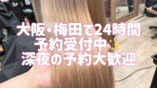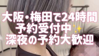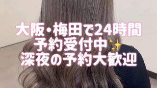大阪梅田の24時間営業・深夜営業のカラー特化美容室。赤みを消すミルクティーグレージュやケアブリーチが得意。ダメージを抑えて透明感カラーを叶えます。