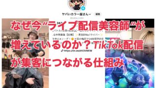 TikTok なぜ今“ライブ配信美容師”が増えているのか?|TikTok配信が集客につながる仕組み 美容師がTikTokライブで伸びる理由をわかりやすく紹介!認知UP・信頼・技術PR・ファン化・バトルの効果まで全部まとめました。ライブ活用で“選ばれる美容師”になるためのポイントがサクッと読めます。 2025.12.07 TikTok